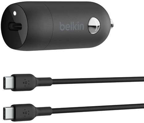 Belkin – Adaptador de corriente para el coche – 30 vatios – 3 A – Fast Charge, Suministro de energía 3.1 (24 pin USB-C) – negro