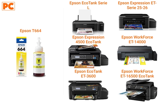 Epson T664 – Amarillo – original – recarga de tinta – para Epson L380, L386, L395, L495; EcoTank ET-2600, 2650, L1455, L396, L606, L656