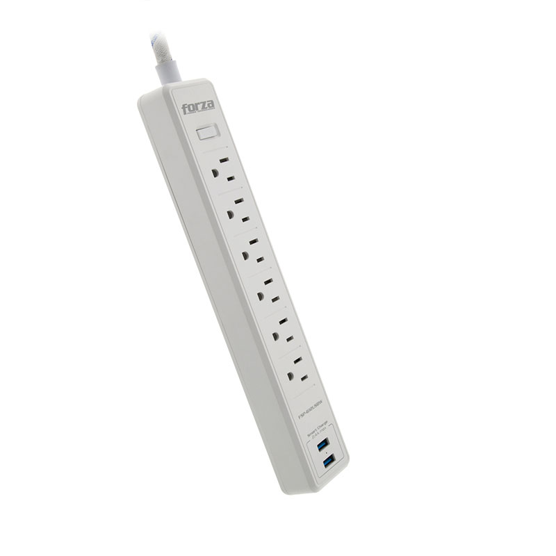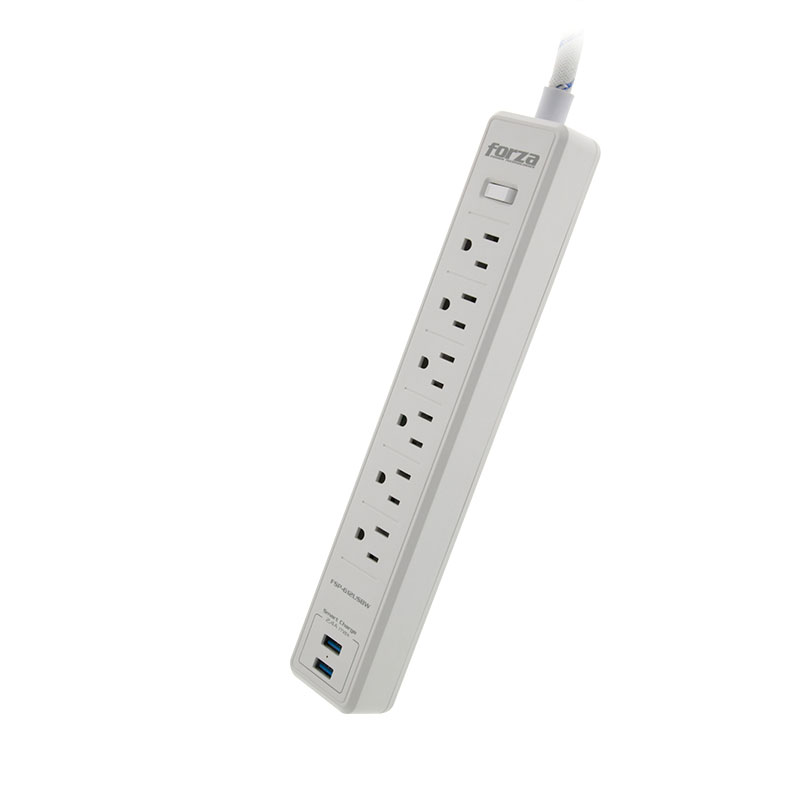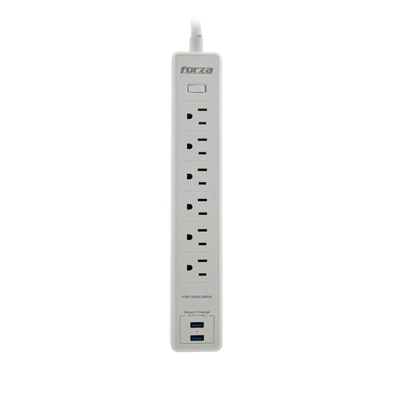 Forza – Surge protector – AC 110/220 V – 6 Tomas de Corriente – NEMA 2USB 5ft WH