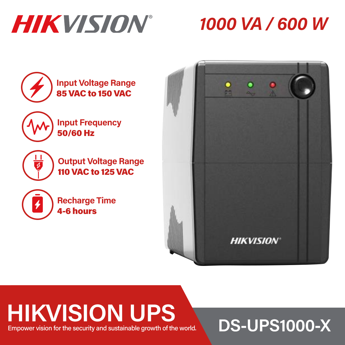 Hikvision – Backup UPS – 1000VA/600W 12V/9Ah Battery x1