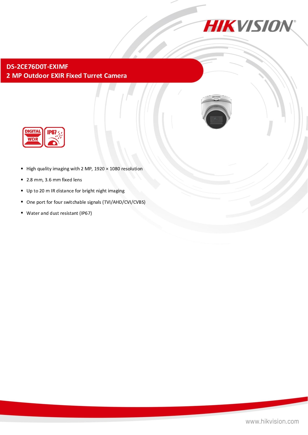 Hikvision – surveillance camera – 2 MP Fixed Turret