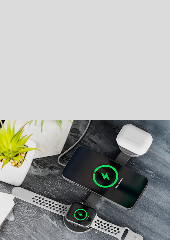 Klip Xtreme – Charging stand / battery charger – 15 Watt – 24 pin USB-C – Cellular phone / Wireless earbuds / Apple AirPods / Apple Watch – Wireless – Para Smartphones – 3 in 1 foldable