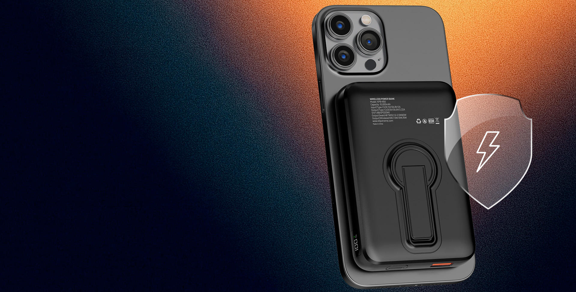 Klip Xtreme – Power bank – 24 pin USB-C – 4 pin USB Type A / 24 pin USB-C – Lithium polymer – Para Universal – Display Wireless Charging