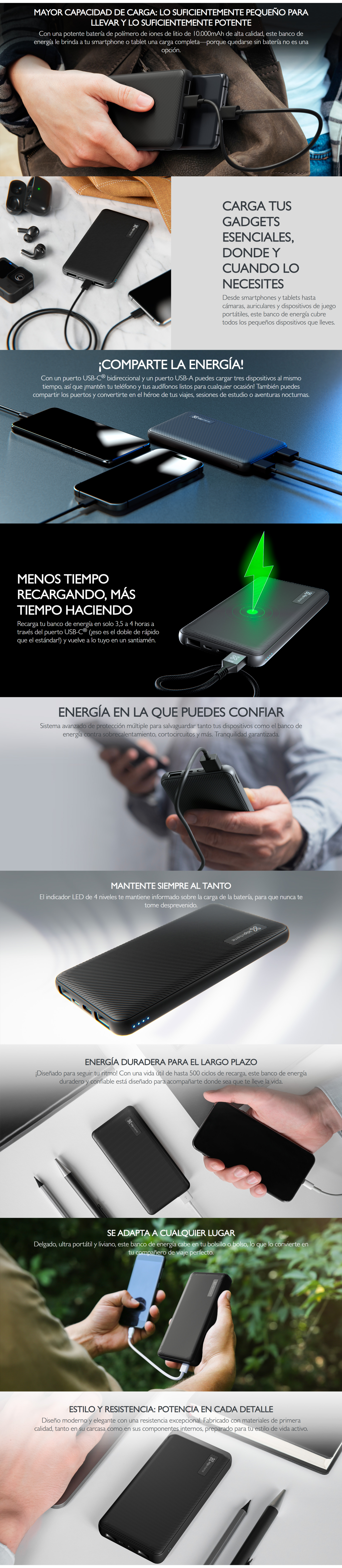 Klip Xtreme – Power bank – 24 pin USB-C / 5 pin Micro-USB Type B – 24 pin USB-C / 2 x 4 pin USB Type A – Lithium polymer – Para Smartphones – 10.000 mAh