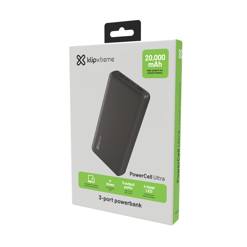 Klip Xtreme – Power bank – 24 pin USB-C / 5 pin Micro-USB Type B – 24 pin USB-C / 2 x 4 pin USB Type A – Lithium polymer – Para Smartphones – 20.000 mAh