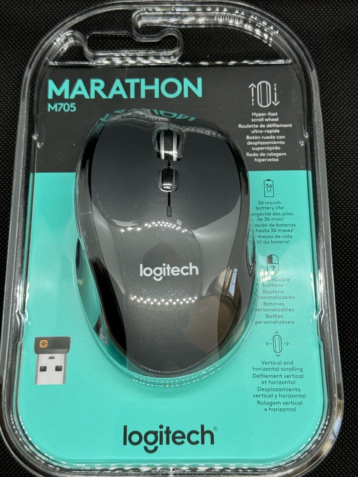 Logitech Marathon M705 – Ratón – ergonómico – diestro – laser – 7 botones – inalámbrico – 2.4 GHz – receptor inalámbrico USB – carbón