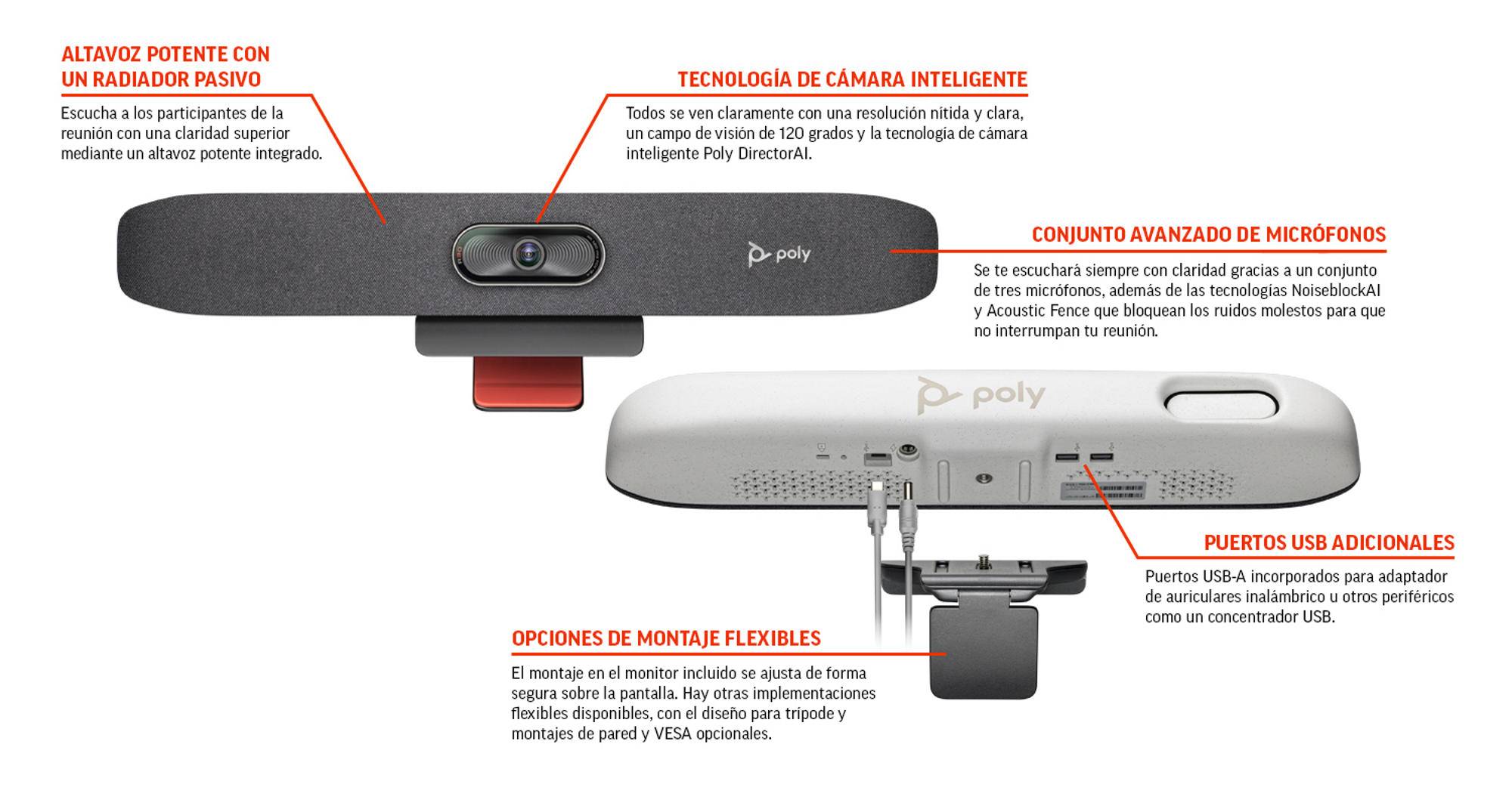 Poly Studio R30 – Personal video bar – Certificado por Zoom, Certificado para Equipos de Microsoft – arena